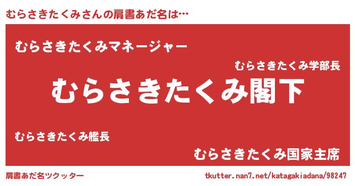 | 意味不明あだ名 | 『自称むらさきたくみ』 |