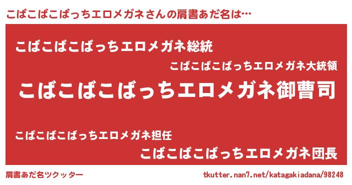 | 男性向けラノベタイトル風あだ名 | 『コバコバコバッチエロメガネアートオンライン』 |
