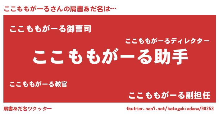 | ヘコむあだ名 | 『ここにゅー』『ここももがーる(遠い目)』 |