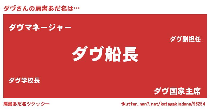 | 意味不明あだ名 | 『ダヴフォーエバー』『永久保存ダヴ』 |