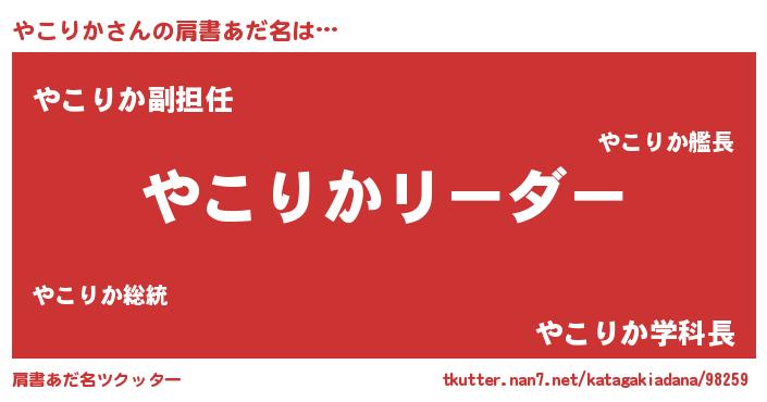 | ヘコむあだ名 | 『やこぷりん』『やこりか(遠い目)』 |