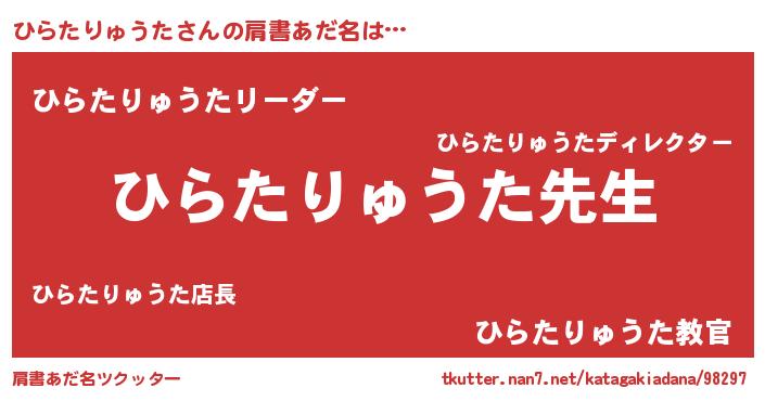 | ヘコむあだ名 | 『ひらたりゅうた(小並感)』『ひらぷりん』 |