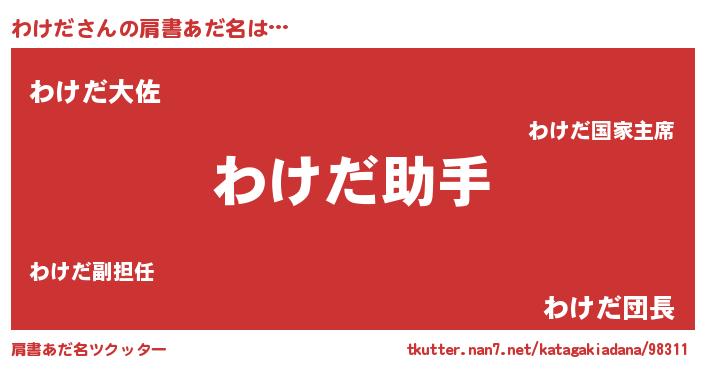 | 可愛いあだ名 | 『わけちゅっちゅ』『わけぷりん』 |