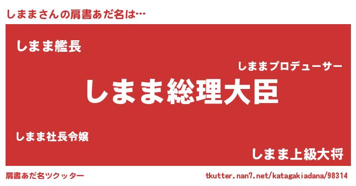 | ヒーロー風カッコイイあだ名 | 『ウルトラしままマン』『スーパーシママ』 |