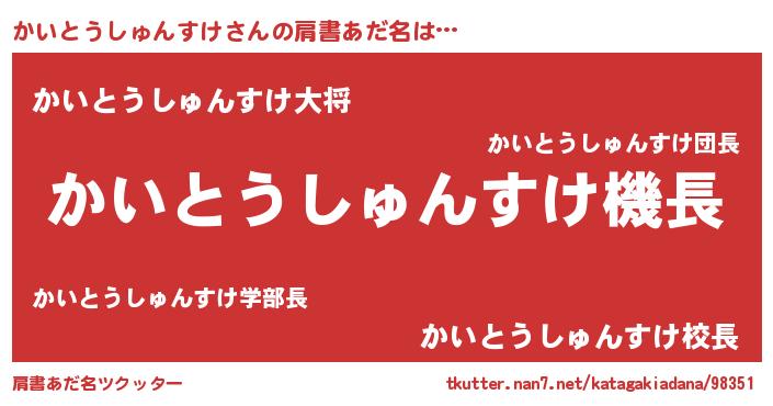 | 伝説のあだ名 | 『古より伝わる勇者かいとうしゅんすけ』 |