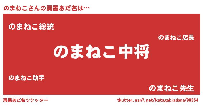 | ヘコむあだ名 | 『のまねこ(震え声)』『のまもー』 |