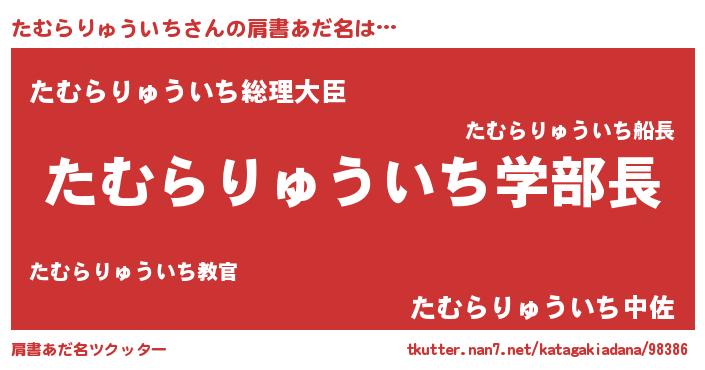 | 男性向けラノベタイトル風あだ名 | 『おまえをオタクにしてやるから、俺をたむらりゅういちにしてくれ! 』 |