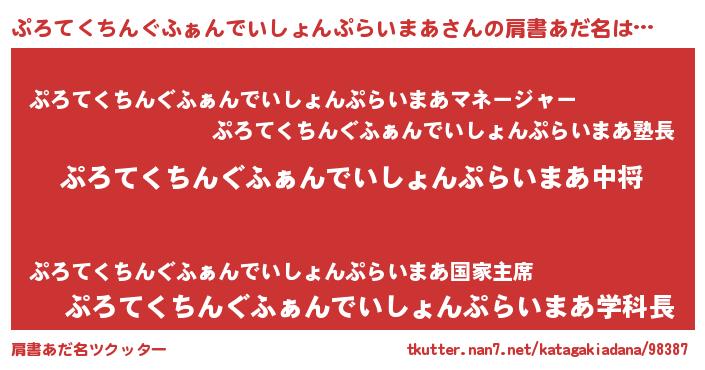| ヒーロー風カッコイイあだ名 | 『友情の使者ぷろてくちんぐふぁんでいしょんぷらいまあ』 |