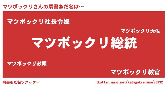 | 男性向けラノベタイトル風あだ名 | 『魔法科高校のマツボックリ』 |