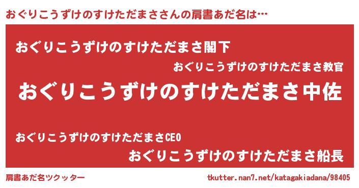 | 欧米人風あだ名 | 『トリンドルおぐりこうずけのすけただまさ』 |