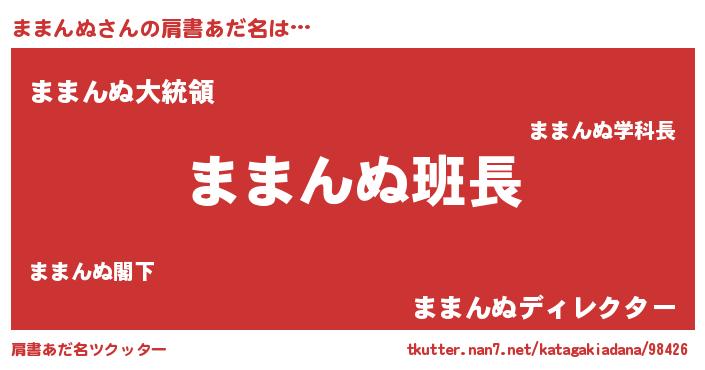 | 男性向けラノベタイトル風あだ名 | 『ダンジョンにままんぬを求めるのは間違っているだろうか』 |
