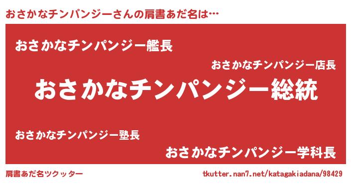 | 男性向けラノベタイトル風あだ名 | 『Re:おさかなチンパンジーから始める異世界生活』 |