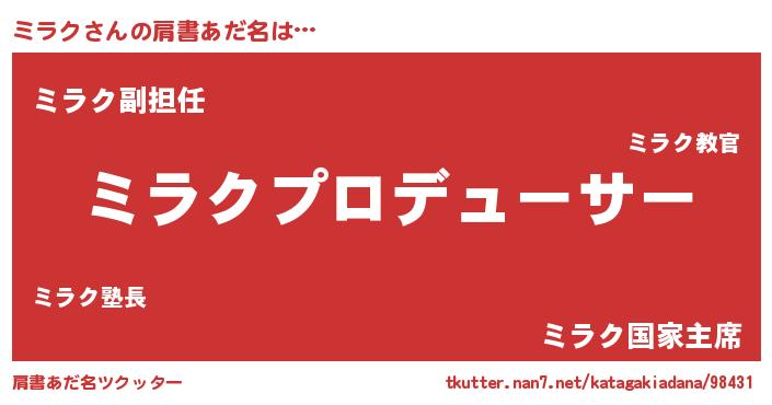 | 意味不明あだ名 | 『永久保存ミラク』『ミラクフォーエバー』 |