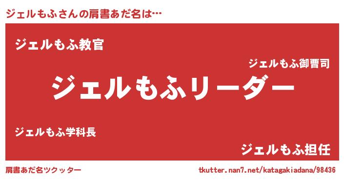 | 男性向けラノベタイトル風あだ名 | 『ダンジョンにジェルもふを求めるのは間違っているだろうか』 |