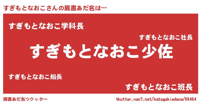 | 意味不明あだ名 | 『ヨモギ科すぎもとなおこ属』 |