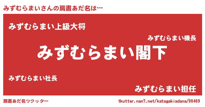 | 男性向けラノベタイトル風あだ名 | 『Re:みずむらまいから始める異世界生活』 |