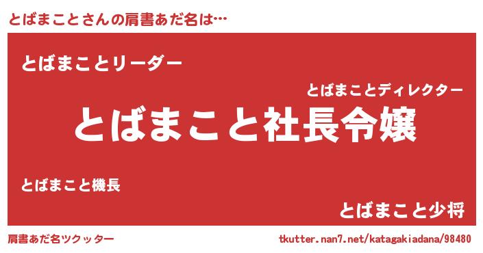 | 恥ずかしいあだ名 | 『プリティーとばまこと』『トバリンリン』 |