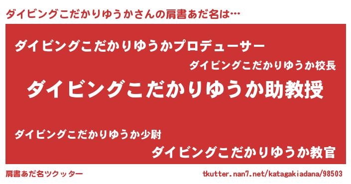 | 男性向けラノベタイトル風あだ名 | 『ノーゲーム・ノーダイビングコダカリユウカ』 |