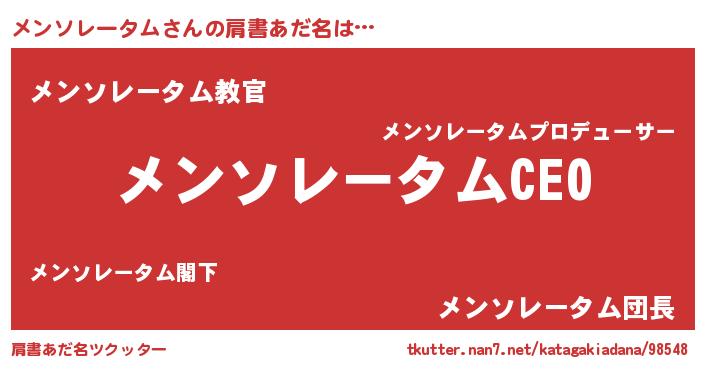 | ヘコむあだ名 | 『メンふぇ~』『メンぷりん』 |