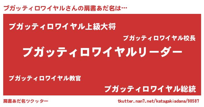 | ポケモン風あだ名 | 『ヒブガッティロワイヤル』『ブガキング』 |
