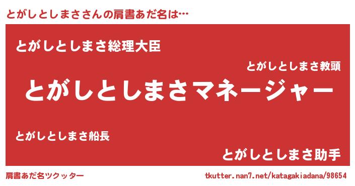 | 意味不明あだ名 | 『とがしとしまさフォーエバー』 |