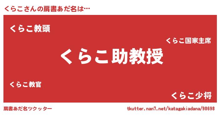 | ヒーロー風カッコイイあだ名 | 『天空の使者くらこ』『ネオクラコ』 |