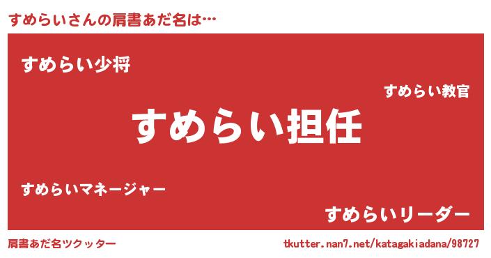 | ヘコむあだ名 | 『すめらい(苦笑)』『すめっぺ』 |
