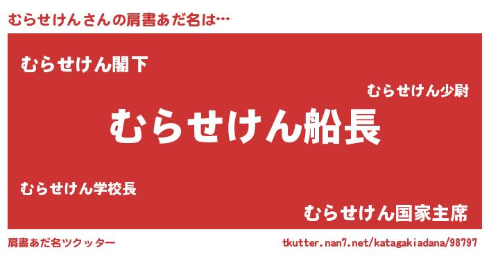 | 意味不明あだ名 | 『自称むらせけん』『ペロリンむらせけん』 |