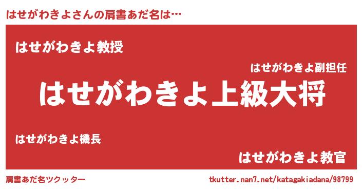 | ヒーロー風カッコイイあだ名 | 『正義の使者はせがわきよ』 |