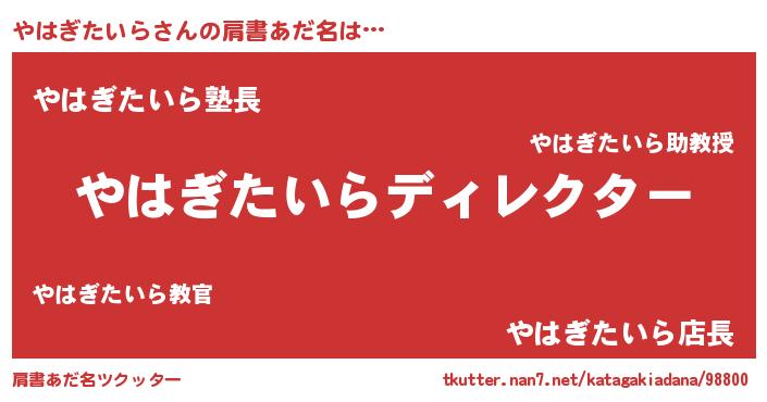 | ポケモン風あだ名 | 『ヤハゴンZ』『ヒヤハギタイラ』 |