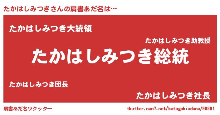 | 意味不明あだ名 | 『自称たかはしみつき』 |