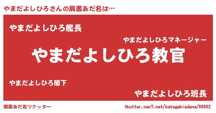 | 男性向けラノベタイトル風あだ名 | 『この素晴らしい世界にやまだよしひろを!』 |