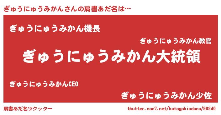 | 伝説のあだ名 | 『秘められし忍者ぎゅうにゅうみかん』 |