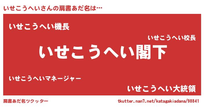 | 女子向けラノベタイトル風あだ名 | 『いせこうへいなんてお断りですっ。』 |