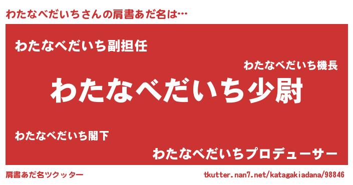 | 胡散臭い通販商品みたいなあだ名 | 『来世でも幸せになれる健康食品…その名も「わたなべだいち」』 |