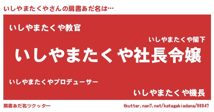 | 胡散臭い通販商品みたいなあだ名 | 『必ず成功する霊験あらたかなお札…その名も「いしやまたくや」』 |