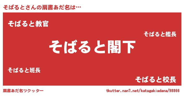 | 意味不明あだ名 | 『自称そばると』『永久保存そばると』 |