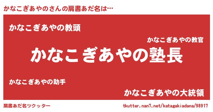 | 男性向けラノベタイトル風あだ名 | 『かなこぎあやのの嫁は女の子じゃないと思った?』 |