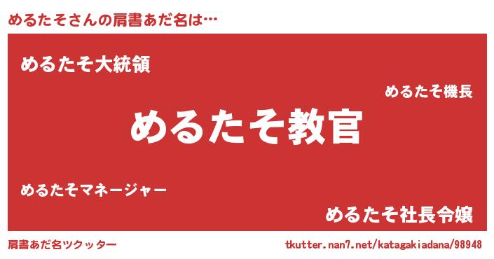 | 男性向けラノベタイトル風あだ名 | 『この素晴らしい世界にめるたそを!』 |
