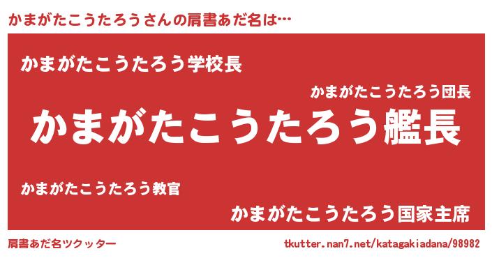 | ヒーロー風カッコイイあだ名 | 『慈愛の使者かまがたこうたろう』 |