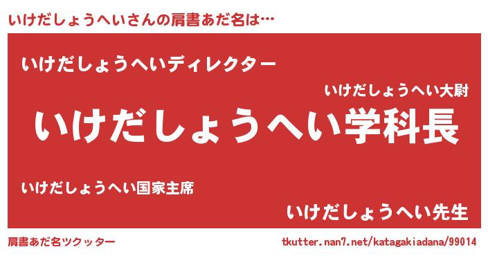 | 男性向けラノベタイトル風あだ名 | 『ノーゲーム・ノーイケダショウヘイ』 |