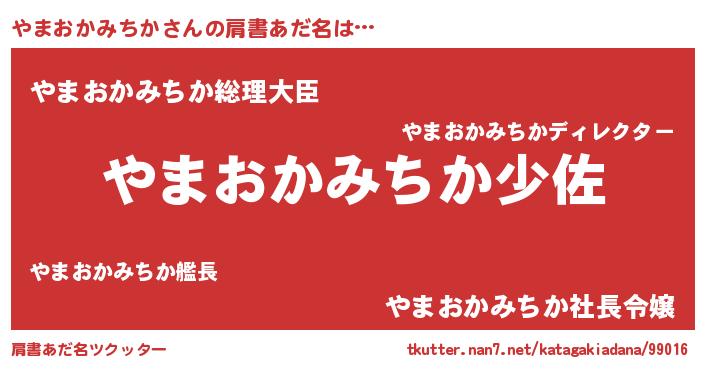 | 男性向けラノベタイトル風あだ名 | 『ヤマオカミチカスレイヤー』 |