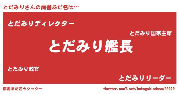 | 男性向けラノベタイトル風あだ名 | 『うちのとだみりが世界を掌握している!』 |