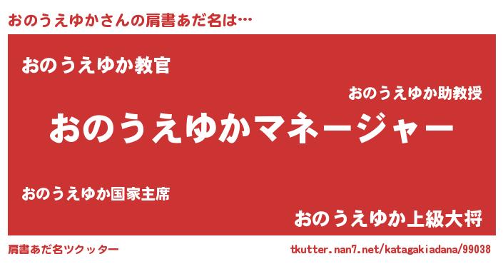 | ヒーロー風カッコイイあだ名 | 『仮面オノダー』『ネオオノウエユカ』 |