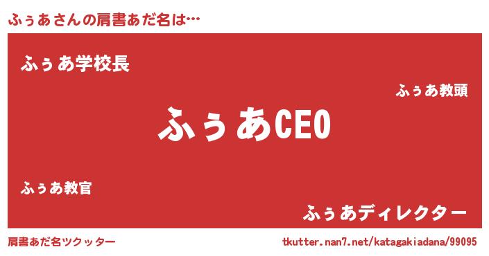 | 男性向けラノベタイトル風あだ名 | 『ふぅあの憂鬱』『はたらくふぅあさま!』 |