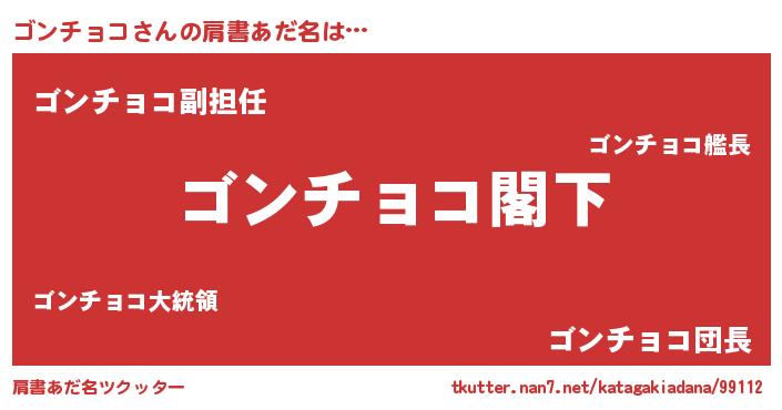 | 意味不明あだ名 | 『自称ゴンチョコ』『永久保存ゴンチョコ』 |