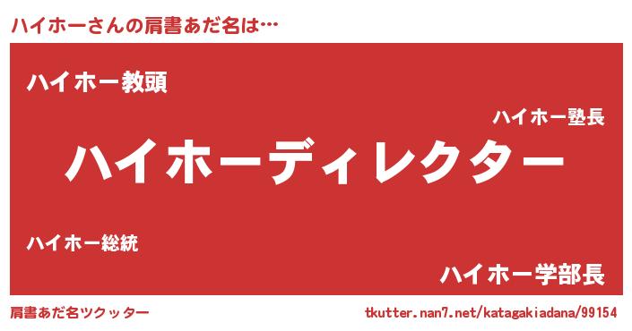| 意味不明あだ名 | 『永久保存ハイホー』『自称ハイホー』 |