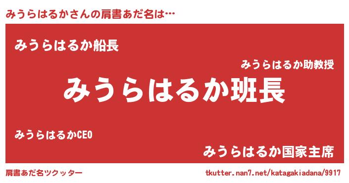 | ヒーロー風カッコイイあだ名 | 『銀牙騎士ミウ』『スーパーミウラハルカ』 |