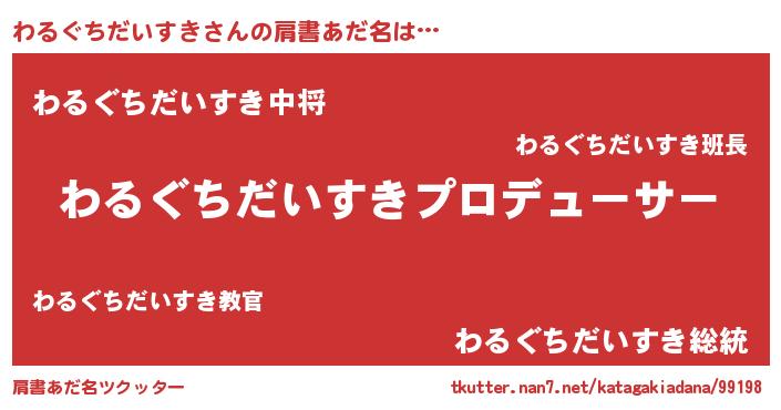 | 男性向けラノベタイトル風あだ名 | 『はたらくわるぐちだいすきさま!』 |