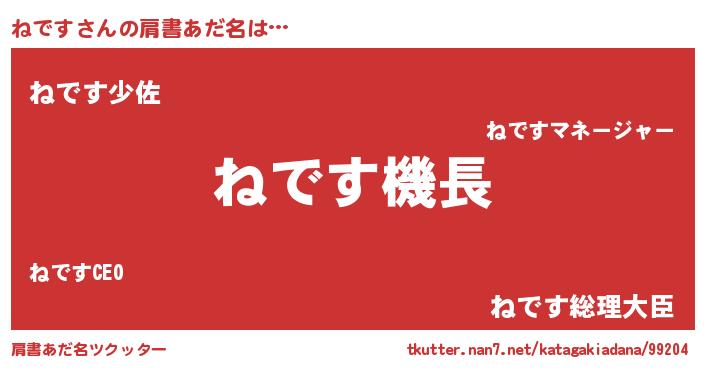| 欧米人風あだ名 | 『ねです・ステッグマイヤー』 |